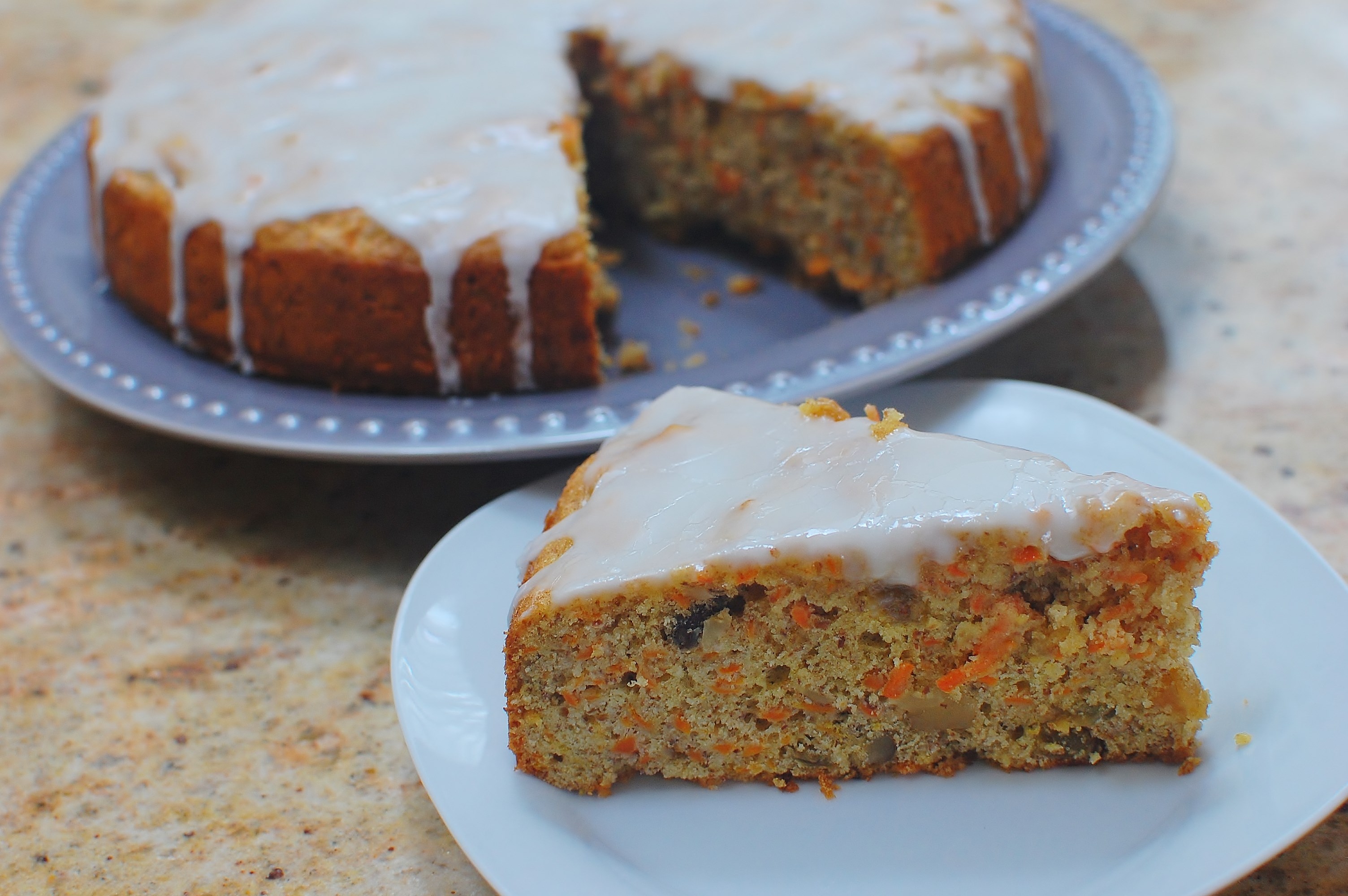 Carrot cake recipes are usually heavy on the oil. This cake has no added fat and is lightened by whipping whole eggs and sugar into a froth, then gently folding in the rest of the ingredients. It’s simple, it’s light, it’s spicy just like carrot cake, and no dairy or added fat! It can be made gluten free too.