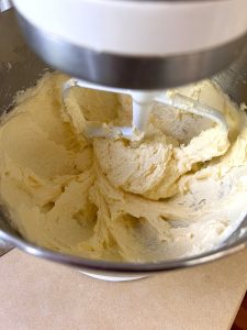 - Continue creaming until the mixture appears fuffy white and increased in volume, scraping sides at least once. It should almost resemble whipped cream cheese and any grainy appearance disappeared. The entire process should take 3 to 4 minutes. Detach the beater paddle and remove bowl from mixer.